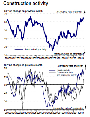 “The results of December’s Ulster Bank Construction PMI survey confirm that activity trends in I rish construction remained robust as 2014 drew to a close. The headline PMI reading of 63.1 indicates that activity once again rose strongly last month, albeit at a slightly slower pace than in November. Respondents continue to report a broad-based recovery across the sector. While the indices for housing and commercial activity declined in December, they both remained at very elevated levels, and civil engineering activity increased at its fastest pace in eight years.