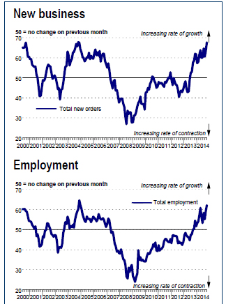 The rate of expansion in new orders accelerated for the second month running and was the strongest since October 2004. Panellists reported ongoing increases in enquiry numbers.