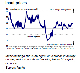 As was the case with activity and new orders, the rise in employment in October was one of the sharpest seen in the history of the survey. Companies raised staffing levels in line with higher workloads. Around 29% of respondents increased employment during the month.